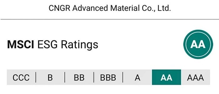 On July 28th, Morgan Stanley Capital International (MSCI), a globally recognized index provider, released its latest ESG ratings. CNGR's rating jumped from BBB to AA, marking a significant leap in the company's sustainable development performance.