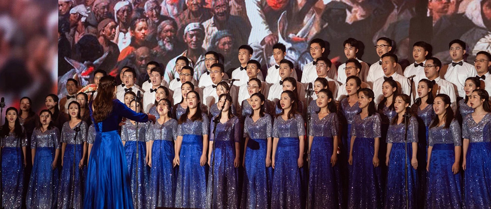 在第一篇章中,宏林建设、新材料西部产业基地、中稼智能制造、控股地产4支合唱队共演唱了包括《唱支山歌给党听》、《到吴起镇》、《太行山上》等多支经典红色歌曲,生动展现在大革命的烽烟中,在艰险的长征路上,在抗日战争、解放战争的沙场上,中国共产党团结带领中国人民浴血奋战、淬火成钢的伟大历程。