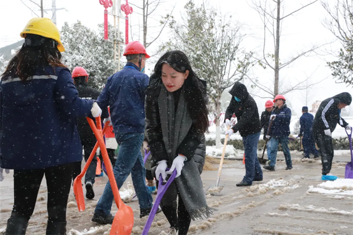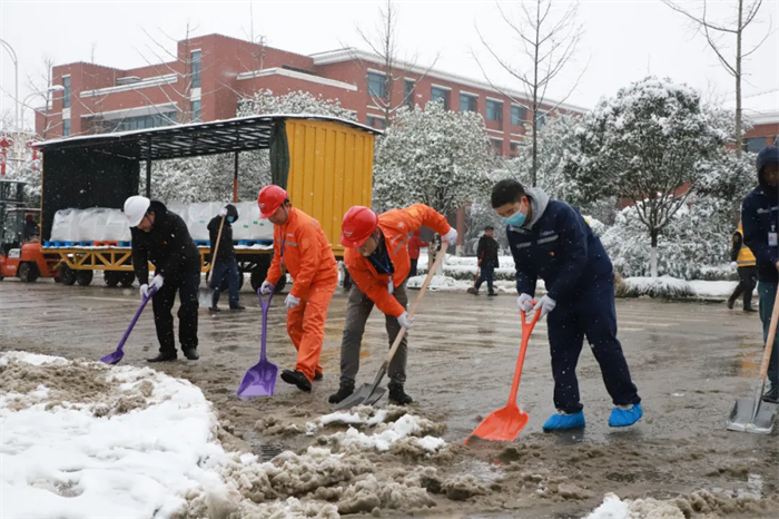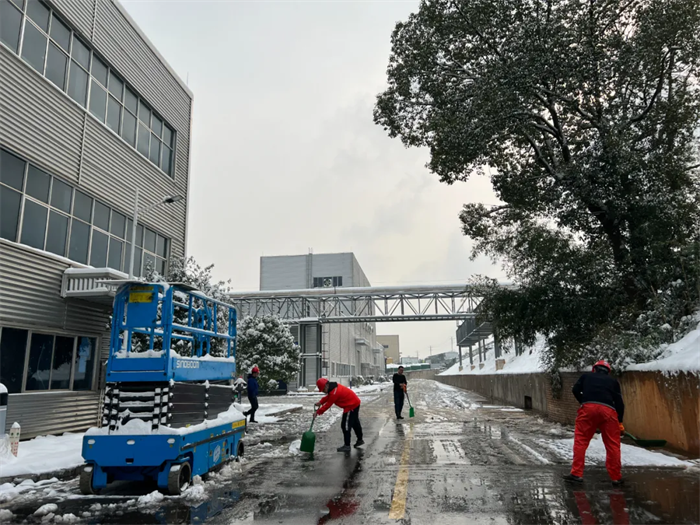 12月26日下午2点,西部产业基地道路积雪结冰严重,EHS部发出路面积雪厚度15厘米的红色预警。为清理积雪、方便员工出行,公司第一时间发布《扫雪除冰倡议书》,立刻得到全体干部员工的积极响应。